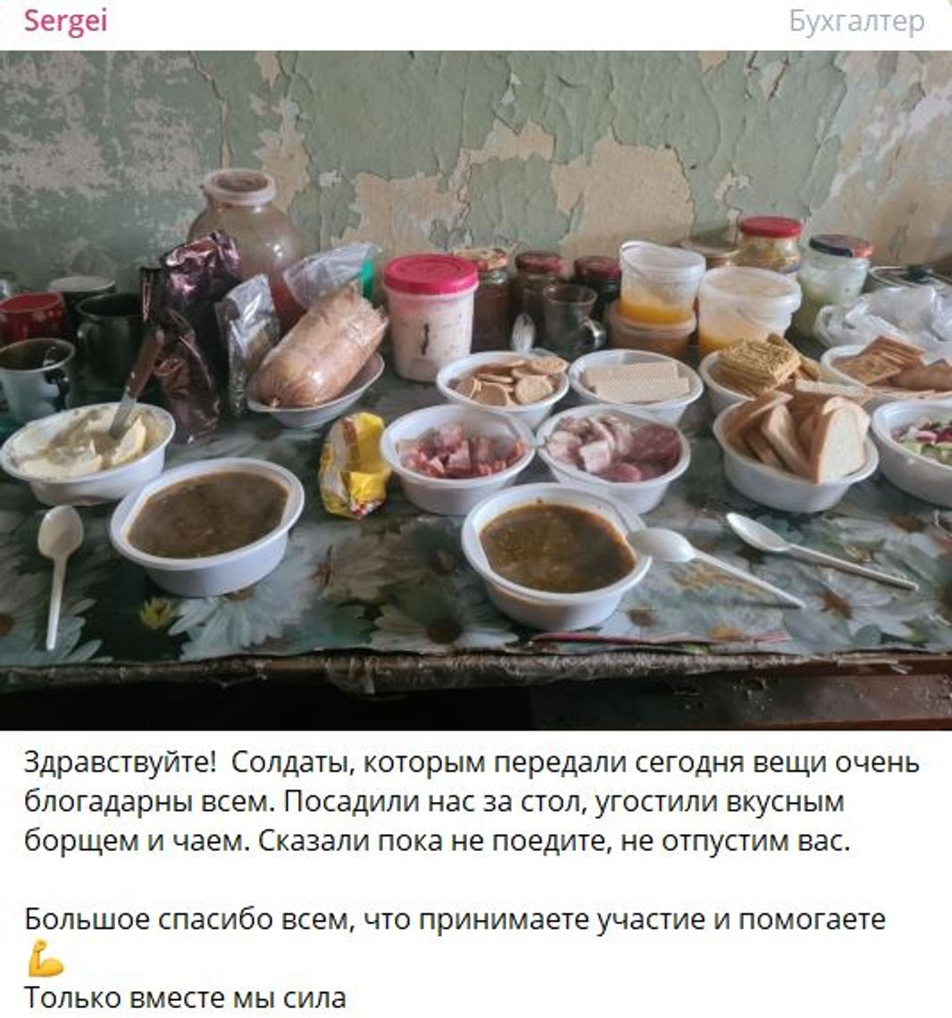 На своих страницах в VK и Telegram «волонтер» и его соратники публикуют фотоотчеты, на которых видно, что они поставляют товары российским военным. Видео об этом публикуются и в Z-каналах.