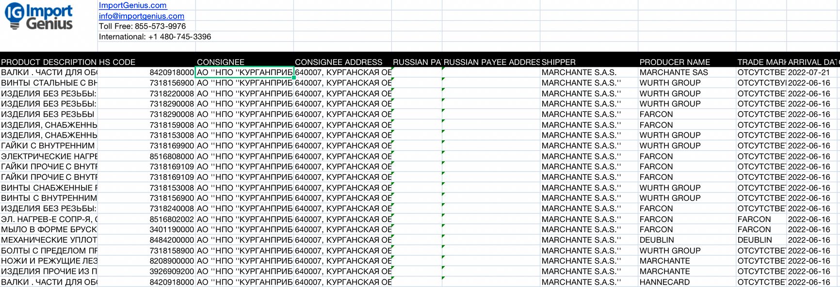 Французская же компания Marchante во время войны снабжала российскую оружейную компанию «Курганприбор» техническими изделиями.