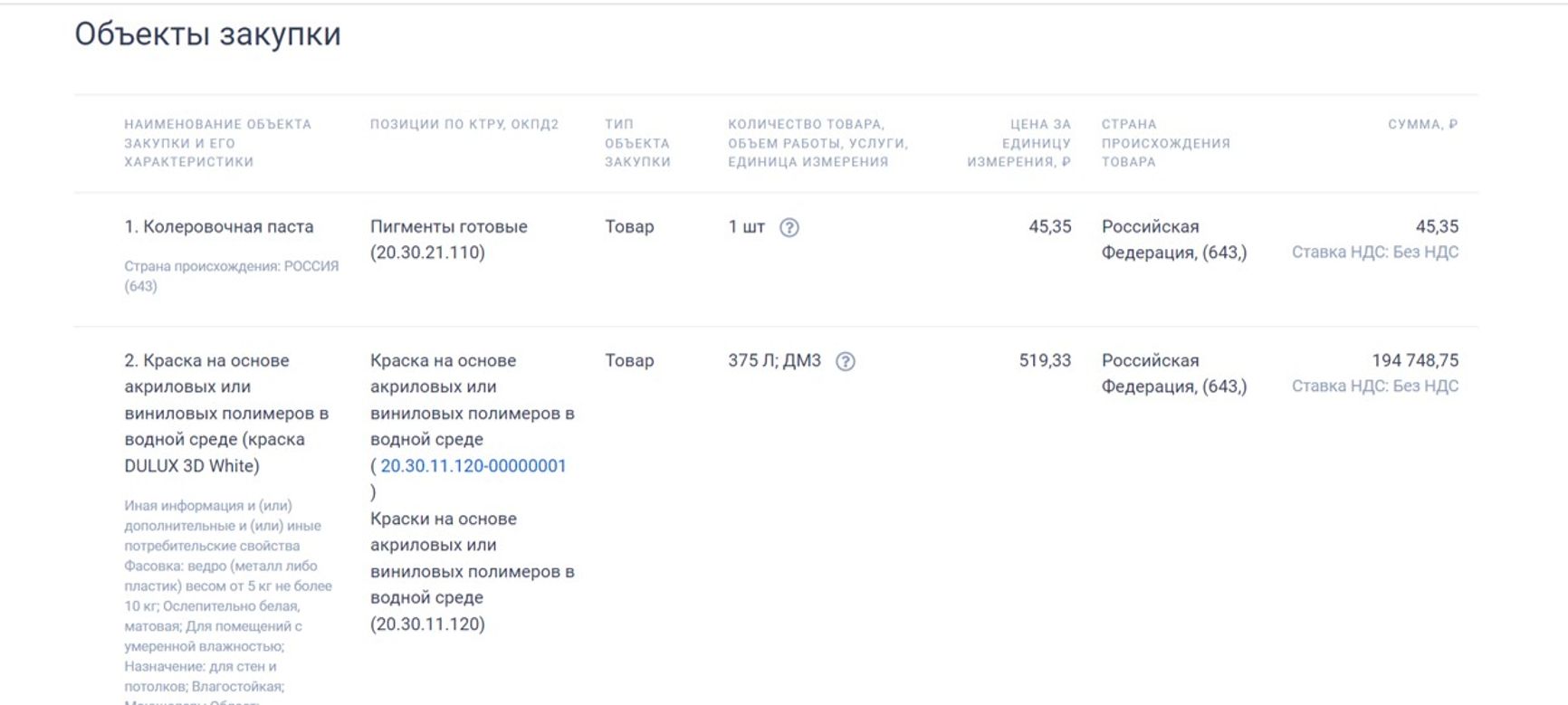 - В апреле 2023 года управление по эксплуатации зданий Федерального собрания заключило контракт на поставку краски Dulux 3D White и грунтовки глубокого проникновения Dulux Bindo Base.