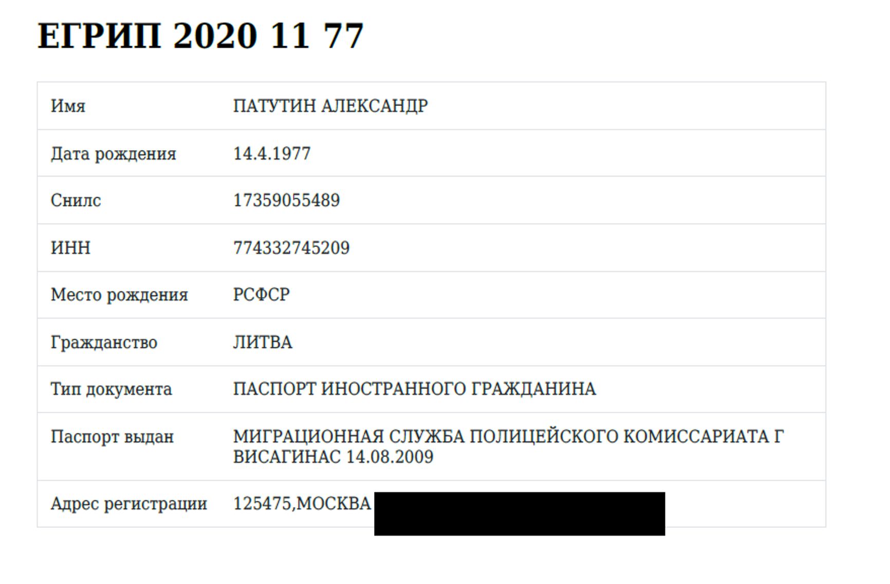 Как иностранцу Патутину удалось войти в этот закрытый для большинства россиян бизнес, источник The Insider ответить не смог. Во время судебного разбирательства по поводу налогов Патутин представился главным инженером «ПГК «Хорошего» Патутиным Александром Станиславовичем, родившимся 14.04.1977. Как выяснил The Insider, среди российских граждан такого человека нет, зато есть среди граждан Литвы.