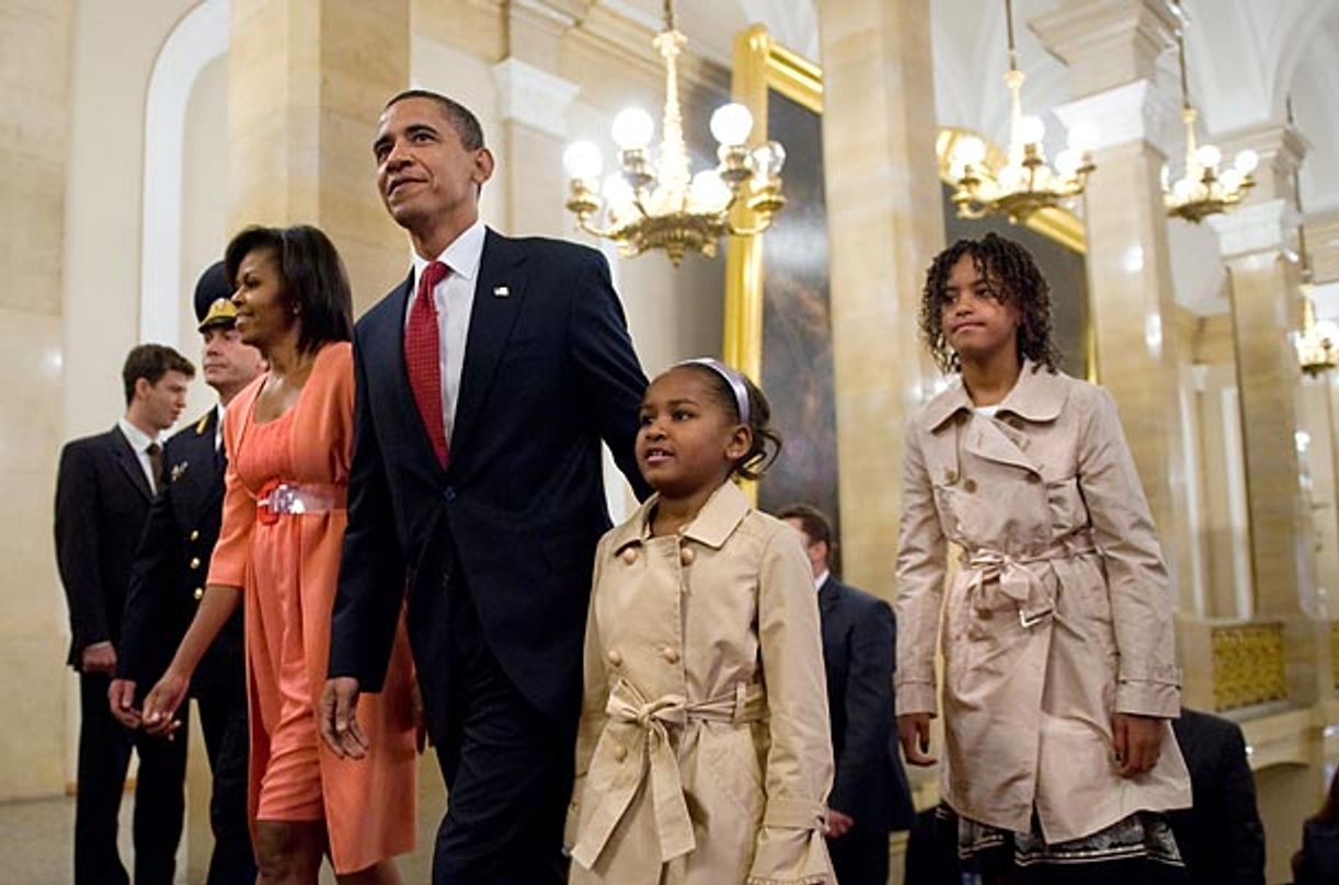 «Я думаю, – сказала она, – я никогда в жизни не чувствовала себя такой уставшей». Почти полуденный сон, казалось, вылечил девочек от смены часовых поясов. Некоторые моменты из этой нашей совместной поездки в Москву запомнились мне, словно они произошли вчера. Саша шагает рядом со мной через величественные залы Кремля, устеленные красными коврами, за ней следуют высокие российские офицеры в форме. А сама Саша засунула руки в карманы своего песочного цвета плаща, как если бы она была крохотным секретным агентом. Или Малия, пытающаяся сдержать гримасу после того, как она храбро согласилась попробовать икру в ресторане на крыше с видом на Красную площадь. (Как и следовало ожидать, Саша отказалась от кучки слизистой черной гадости на моей ложке, даже рискуя не получить позже рожок в магазине мороженого). /…/