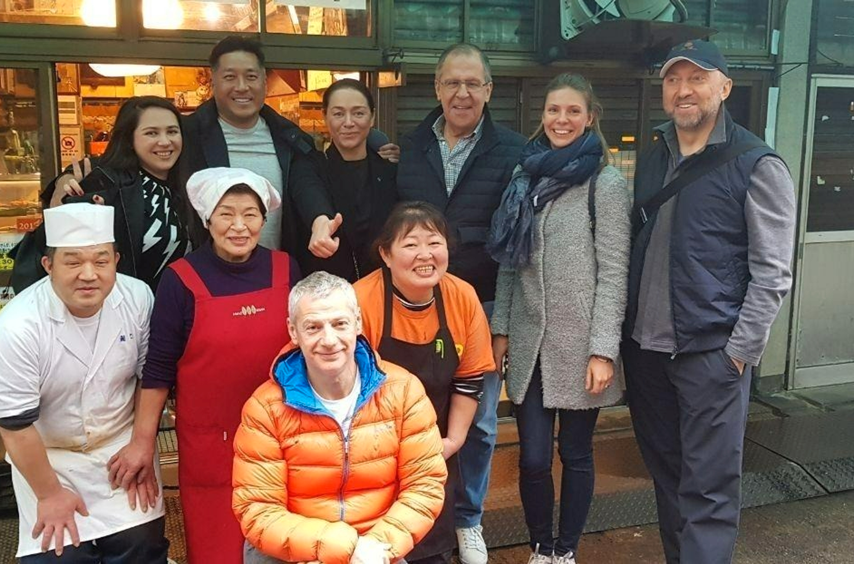 В распоряжении The Insider и New Lines оказалась фотография, где на фоне японского ресторана позируют Сергей Лавров, его любовница Светлана Полякова (слева от него), Олег Дерипаска, эскортница Екатерина Лобанова (рядом с Дерипаской), Геннадий Ровнер — в прошлом владелец сети стриптиз-баров, а ныне председатель попечительского совета «Фонда Перспективных Программ» (на фото в оранжевой куртке), и Анджело Ку, председатель Китайского фонда развития Тайваня (второй слева в верхнем ряду).