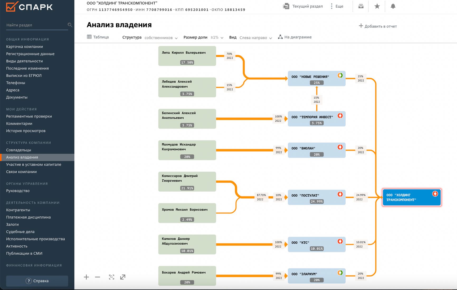Через цепочку юрлиц (ООО «Виолан» и ООО «Элариум») по 20% в «Холдинг ТрансКомпонент» принадлежит Искандару Махмудову и Андрею Бокареву. Оставшиеся доли делят их партнеры, менее известные широкой публике.