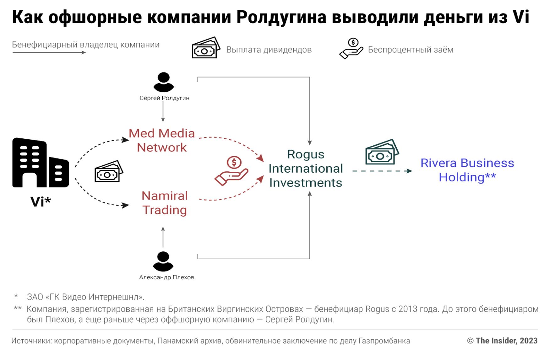 Цюрихский прокурор изучил договоры Namiral Trading и Med Media Network и нашел еще один «трубопровод» — панамско-кипрскую компанию Rogus International Investments Ltd. Ей офшоры Ролдугина и Плехова одним летним днем 2014 года предоставили на десять лет беспроцентные займы по 350 млн рублей. Цель передачи денег не была указана. Владельцем фирмы в тот момент была компания с Британских Виргинских Островов — одной из самых закрытых юрисдикций для ведения бизнеса, а до этого — Александр Плехов (в 2009–2012 гг.) и Сергей Ролдугин (в 2007–2009 гг.).