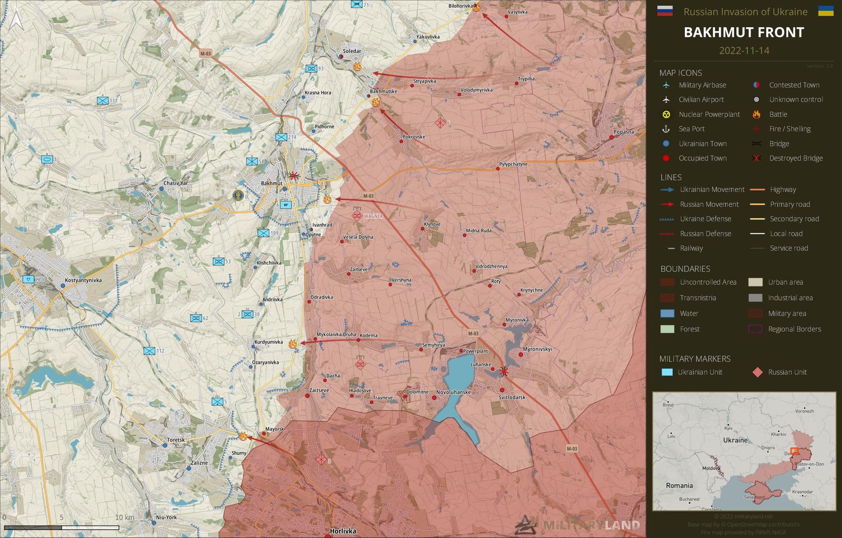 На Донецком направлении ожесточенные бои идут рядом — в Марьинке, преимущество здесь у российских военных — по данным Telegram-канала «военкора» Семена Пегова WarGonzo, украинский гарнизон в Марьинке находится в критическом состоянии. Стрелков называет это «мясорубкой тактического уровня».