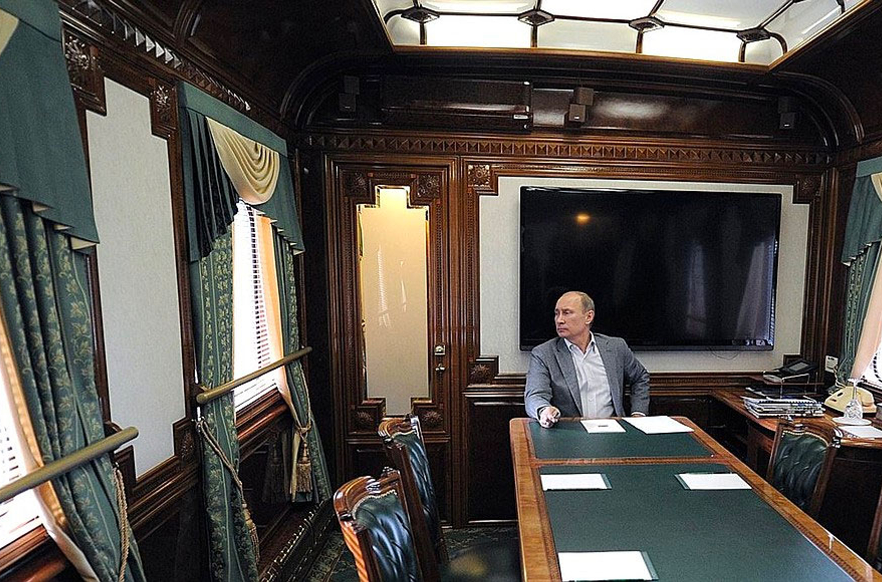 Как отмечает «Досье», поезд Путина внешне не сильно отличается от других российских поездов: на нем такие же серо-красные полосы, как у обычного пассажирского состава. Но несколько вагонов поезда бронированы и оснащены спецсвязью.