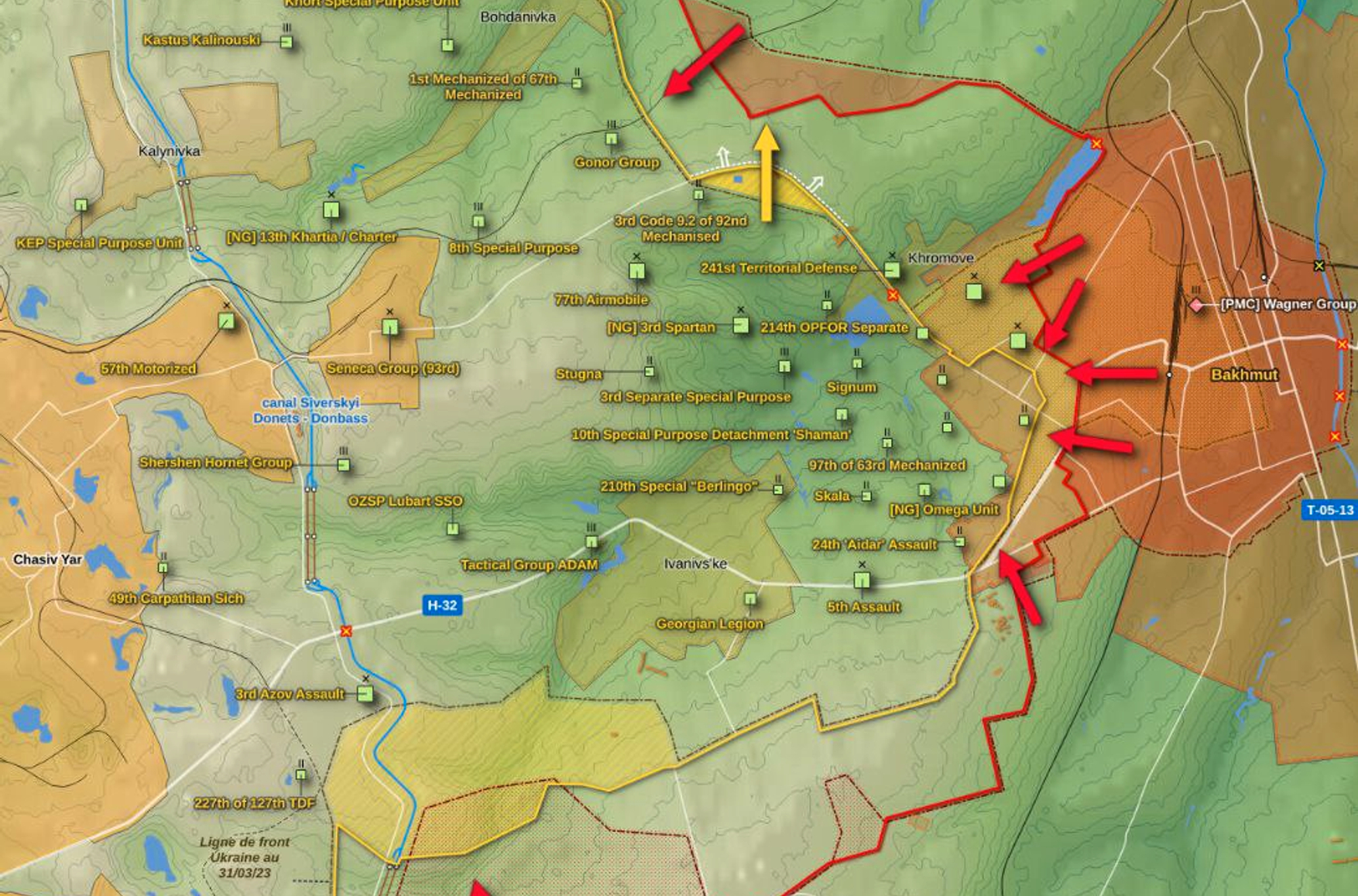 Представитель Совета национальной безопасности США Джон Кирби сообщил, что общие потери российских сил в Украине с декабря 2022 года составляют 100 тысяч человек, из них 20 тысяч погибшими. Около половины погибших, по американским данным, приходится на ЧВК Вагнера. Ранее в СМИ разошлась ошибочная версия слов Кирби о том, что все указанные потери зафиксированы в районе Бахмута.