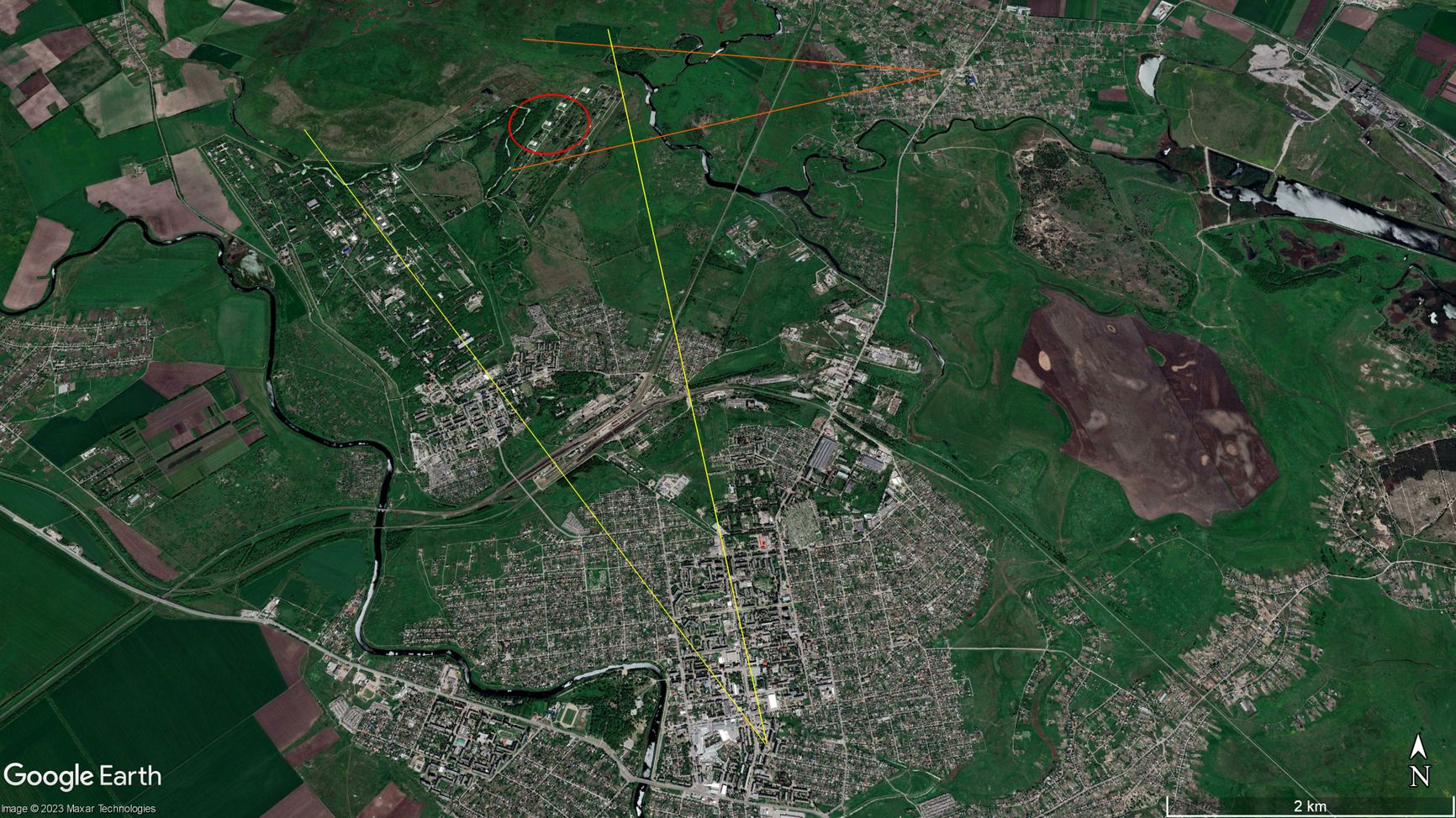 Согласно геолокации одного из видео последствий удара, которую выполнил аналитик Оливер Александер, взрыв имел место именно в районе химзавода, а не железнодорожной станции, где могли находиться украинские боеприпасы или техника, перебрасываемые на восток для предстоящего контрнаступления.