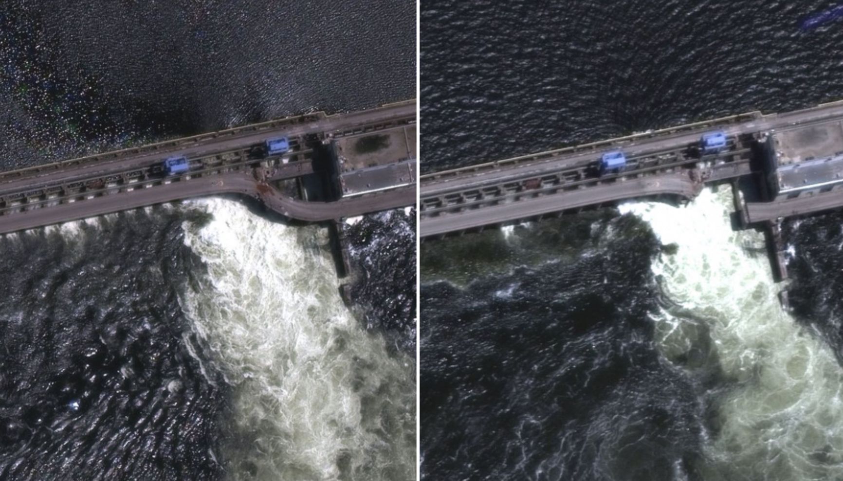 Еще через день стало известно, что американские спутники-шпионы также зафиксировали взрыв на плотине незадолго до ее обрушения, но американские аналитики до сих пор не знают, кто ответственен за разрушение плотины и как именно это произошло.