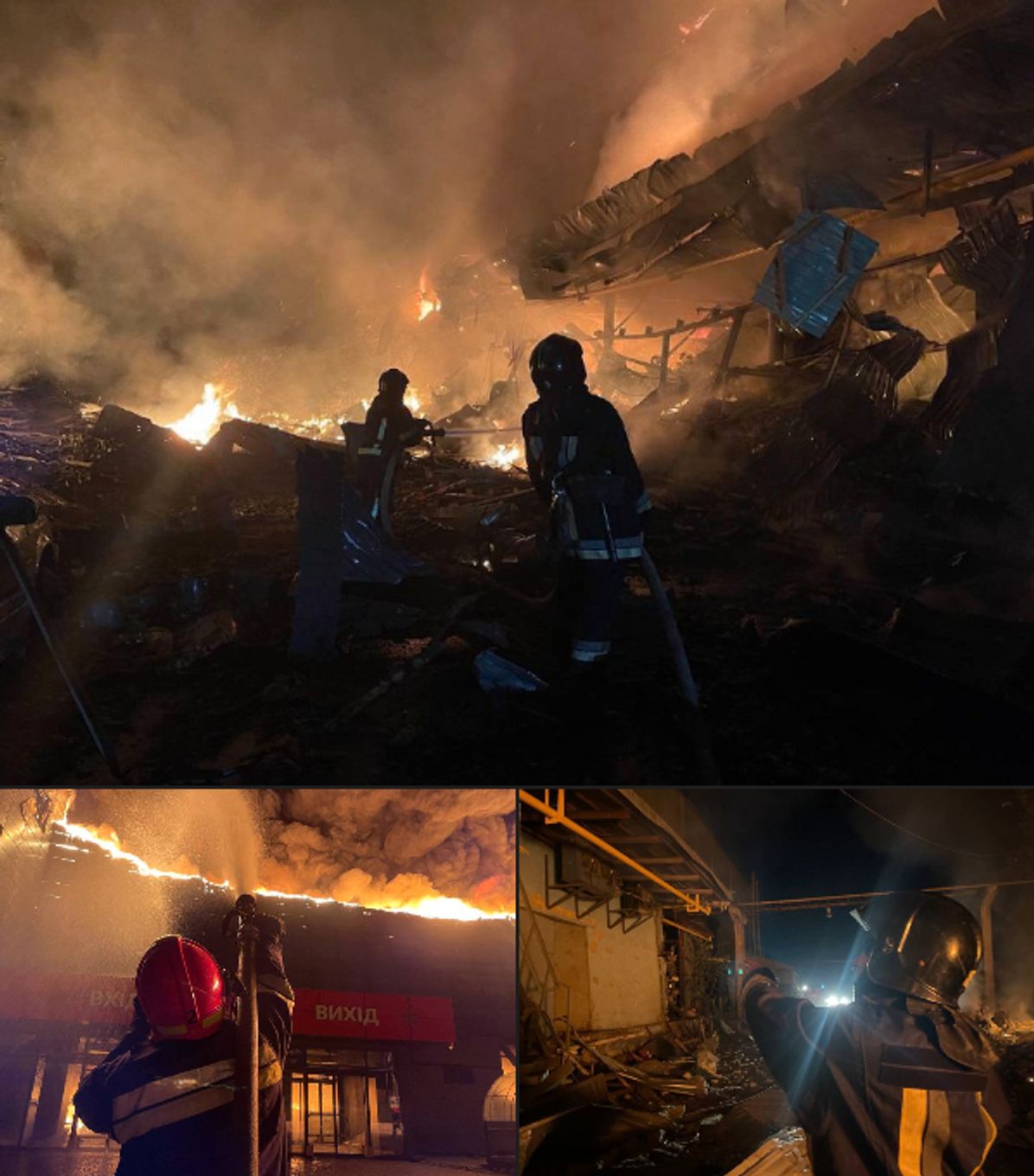 Министр внутренних дел Украины Игорь Клименко опубликовал в Telegram фото последствий пожара в супермаркете, начавшегося после обстрела со стороны РФ.