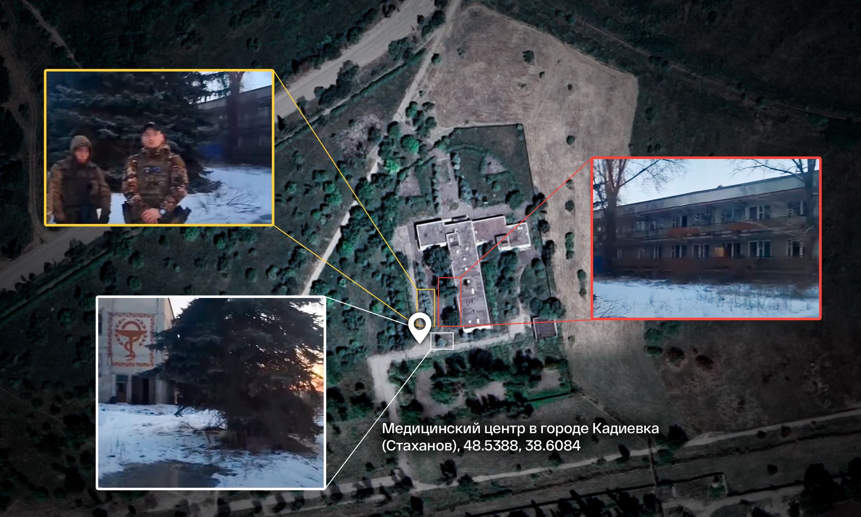 The Insider удостоверился в подлинности видео, геолоцировав его на территории медицинского центра к северу от вагоностроительного завода в оккупированной Кадиевке (до 2016 года — Стаханов).