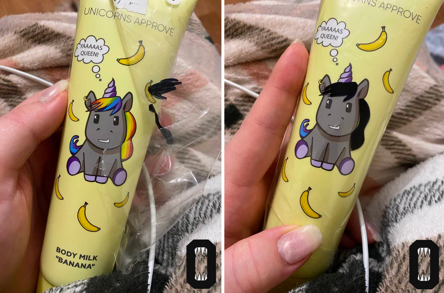 Сеть косметических магазинов «Лэтуаль» закрашивает радужные гривы единорогов на упаковках косметики. Об этом пишет канал «Осторожно, новости», по его информации сотрудники сети получили такое распоряжение от руководства. Раскрашиваются упаковки бренда Unicorn Approve. Единорог изображен на всей продукции, однако на некоторых упаковках у него просто розовая грива, а на некоторых — радужная. Теперь ее закрашивают черным маркером.
