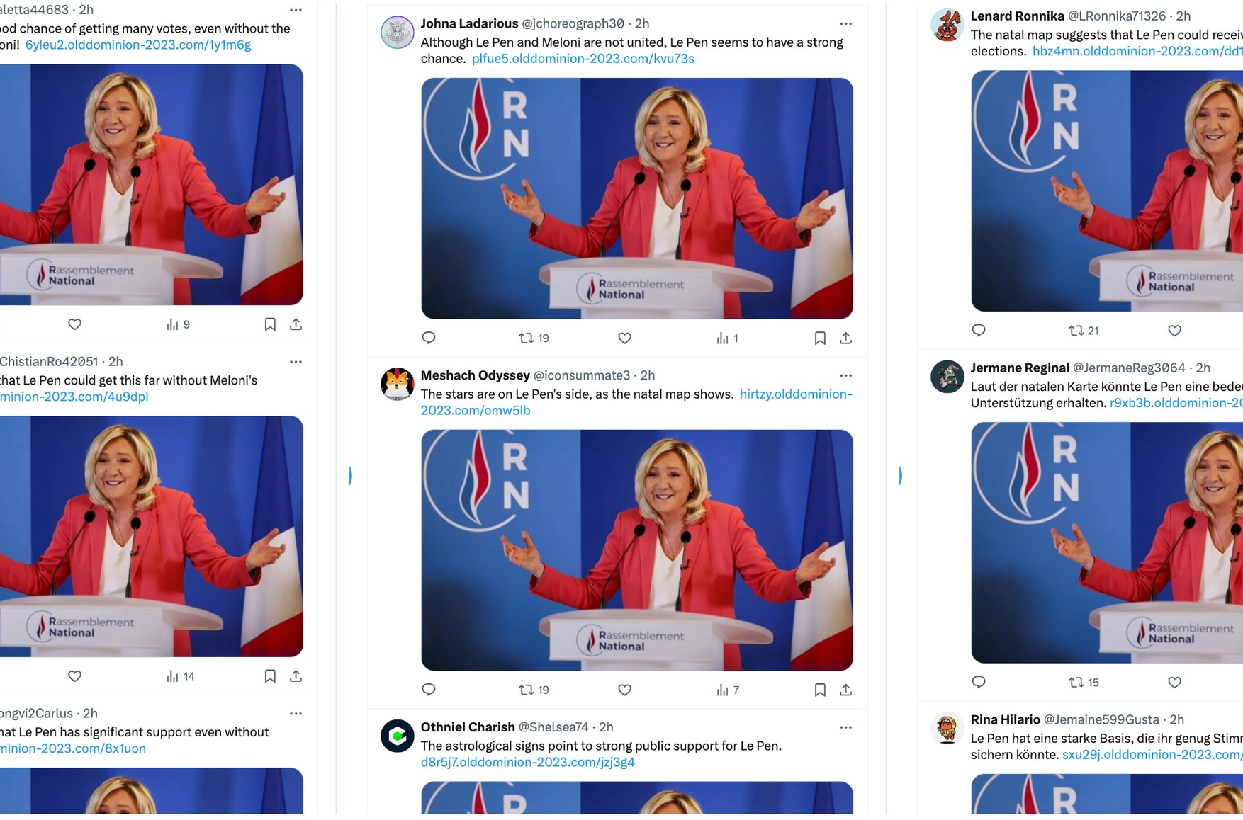Было опубликовано 2 млн твитов, и за 24 часа их посмотрели 1,6 млн пользователей сети Twitter. В 2024 году МИД Германии сообщал о подобной атаке, но тогда речь шла о 200 тысячах твитов — это в десять раз меньше, чем возможности Doppelgänger сейчас. Причем публикации делаются на как минимум 13 языках одновременно, включая турецкий, арабский и даже корейский, отмечают исследователи.