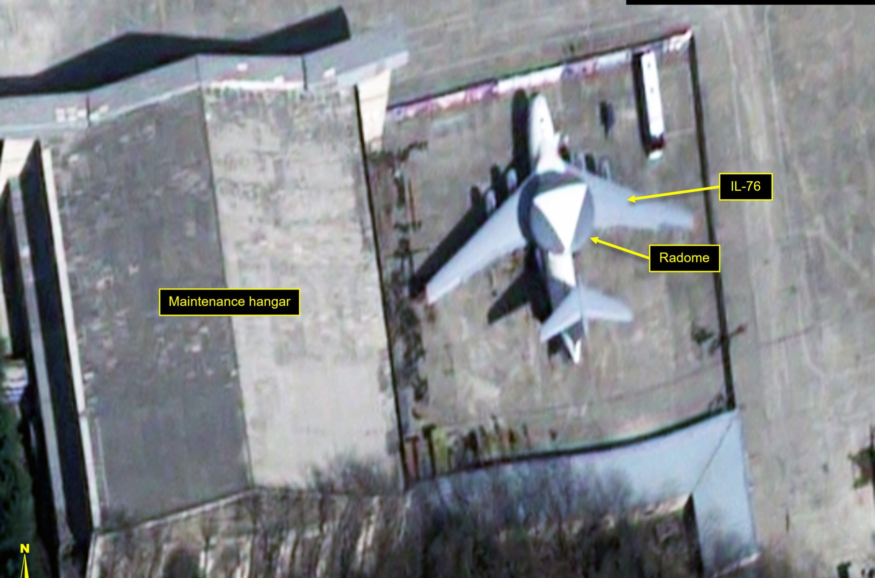 На снимке, который публикует проект, виден самолет Ил-76 в аэропорту Сунан в Пхеньяне. На нем установлен обтекатель антенны радиолокационной станции. Кадры были сделаны 3 марта спутниковой системой компании Airbus.