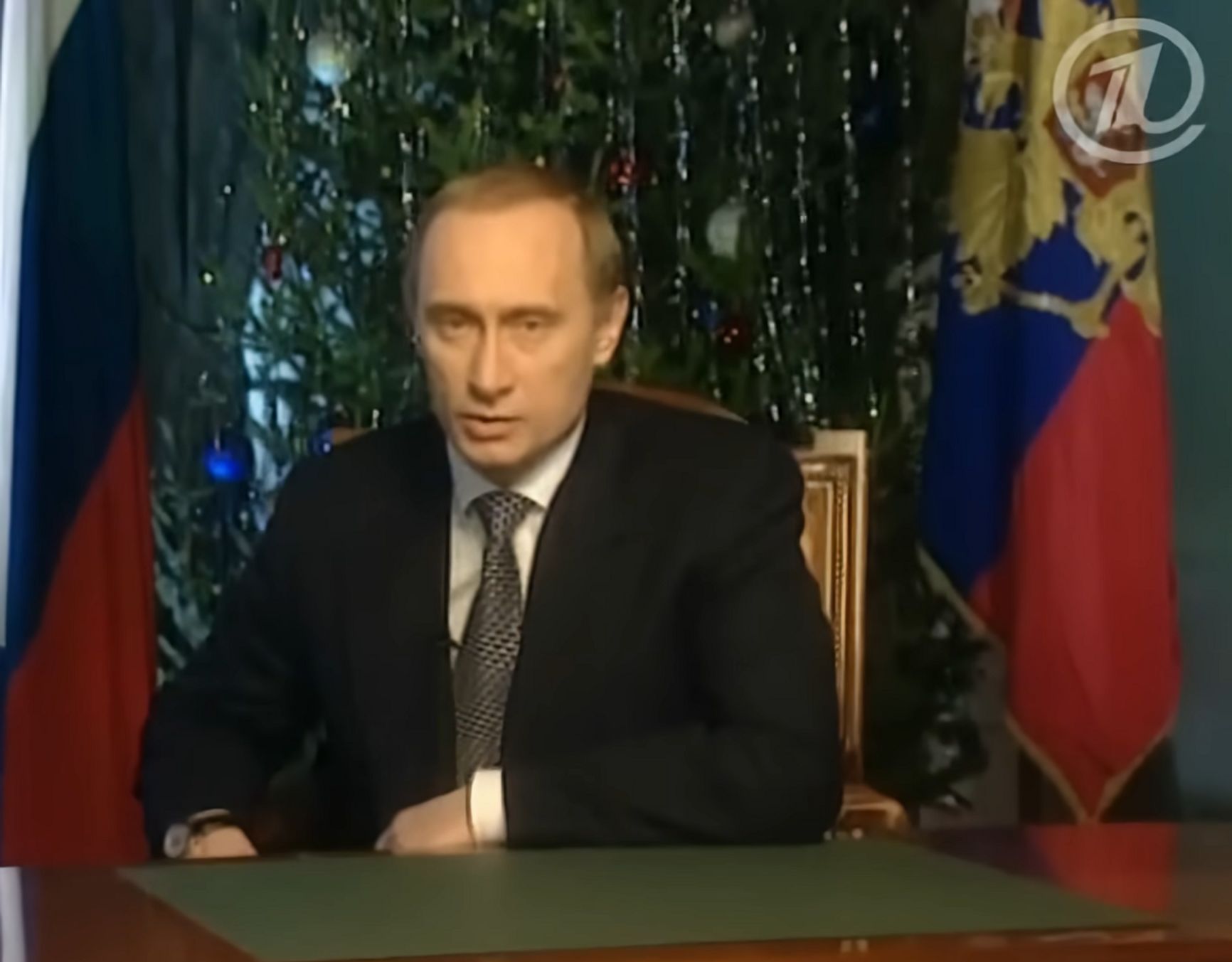 Впервые с новогодним обращением к народу Путин выступил 31 декабря 1999 года. В тот день федеральные каналы транслировали сразу два выступления: сначала — Бориса Ельцина, объявившего о своей отставке, а затем — Владимира Путина, назначенного исполняющим обязанности президента. Обращаясь к аудитории, Путин сказал, что Россия уже «пошла по пути реформ», и пообещал защищать демократические ценности и свободы.