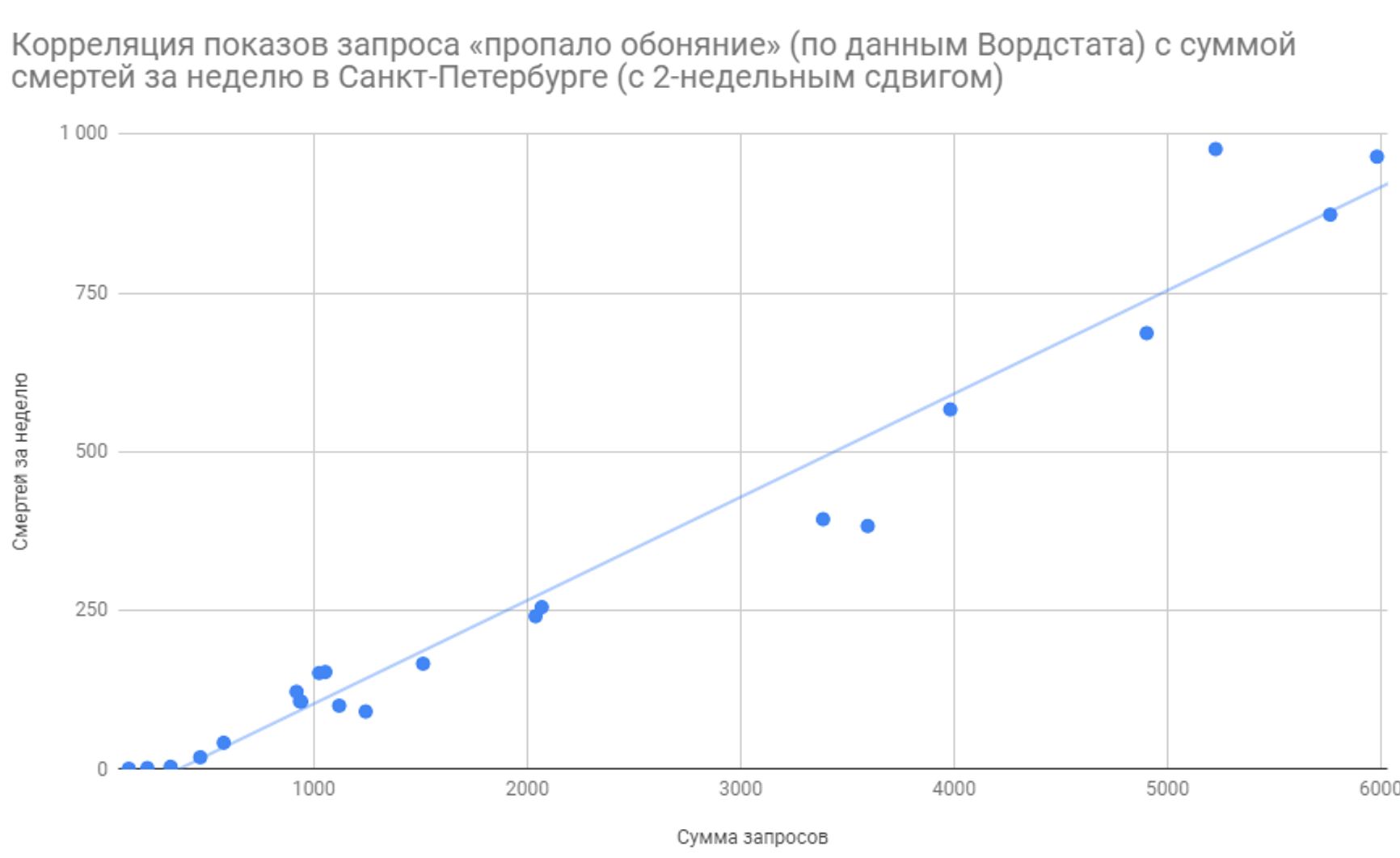 И если запросы отражают распространение эпидемии, то они должны коррелировать и с избыточной смертностью в регионах: так и происходит.