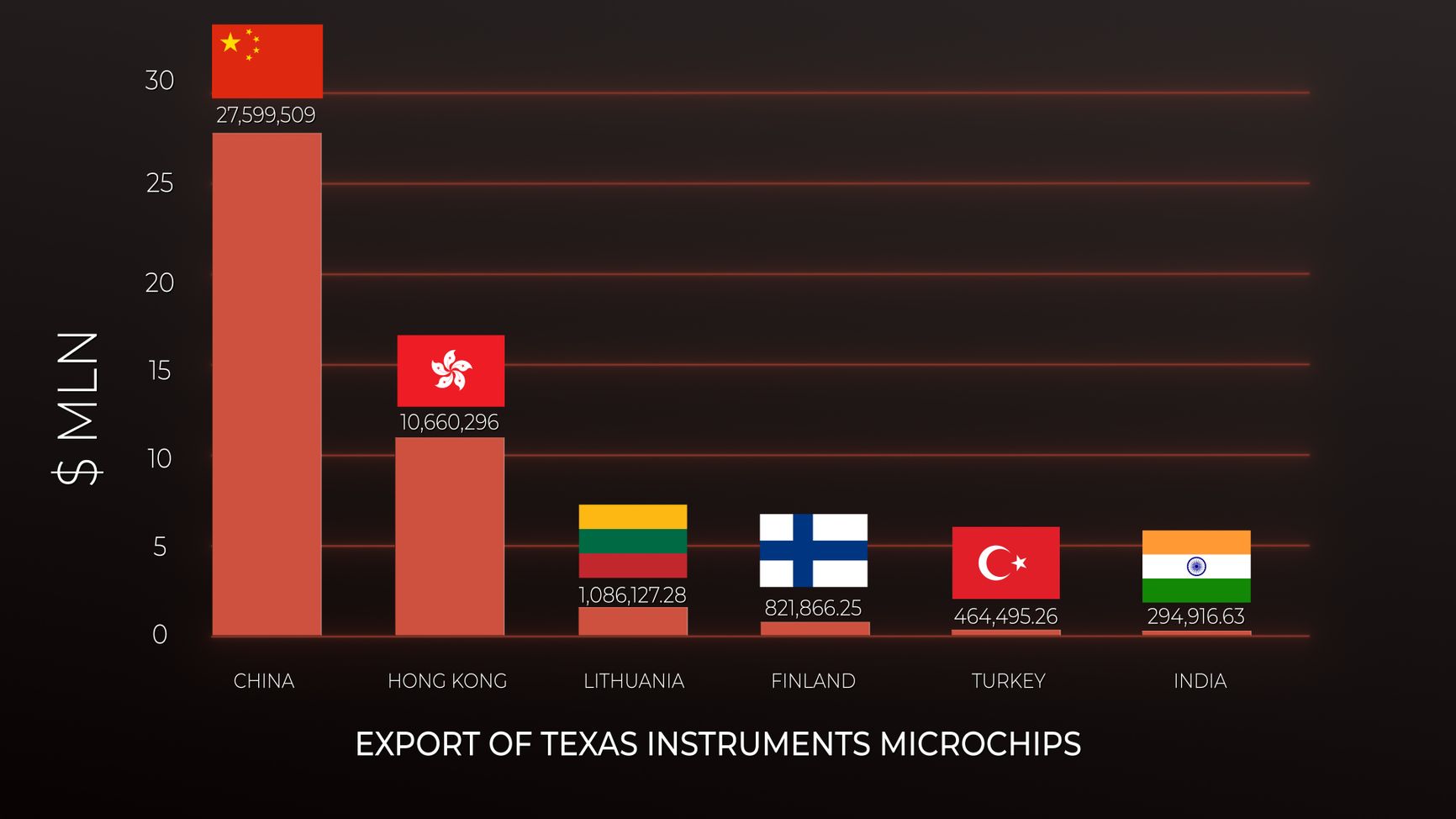 Литва находится на третьем месте среди экспортеров продукции Texas Instruments в Россию. Следом за ней идет Финляндия